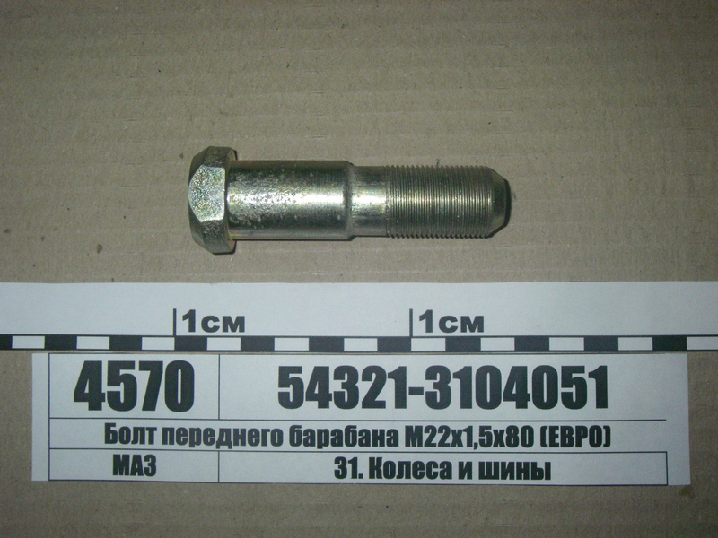 Болт М22х1,5х80 переднього гальмівного барабана МАЗ ЄВРО з гайкою (в-во S.I.L.A. AC) 54321-3104051 |