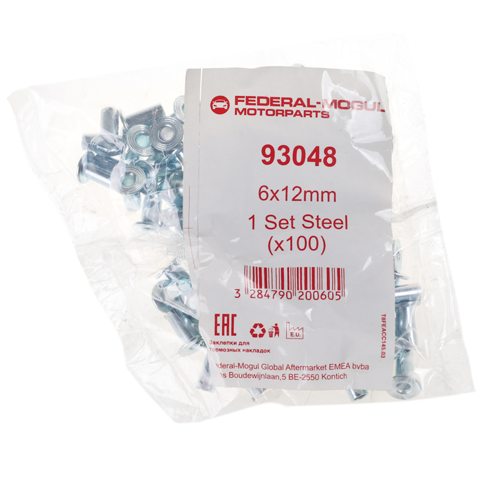 Заклепка 6х12 для барабанного гальма (лита сталь) (0,176кг, 100шт) (ТМ FERODO, Federal-Mogul) 93048 |