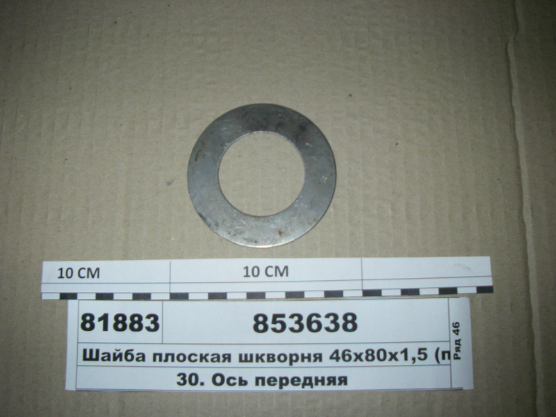 Компанія "Автокомпоненти "Автек" пропонує придбати Шайба плоска шкворня 46х80х1, 5 (в-во КАМАЗ) прямо зі складу по вигідній ціні, як для роздрібного клієнта - так і для малого або великого бізнесу. Шайба плоска шкворня 46х80х1, 5 (в-во КАМАЗ) відповідає всім зазначеним технічним характеристикам від виробника, що гарантує високу якість за демократичну ціну. Цінуйте свій час та гроші! Замовляйте Шайба плоска шкворня 46х80х1, 5 (в-во КАМАЗ) в компанії "Автокомпоненти "Автек", а якщо вам потрібна допомога нашого спеціаліста - скористайтеся кнопкою "ЗВОРОТНІЙ ЗВ'ЯЗОК".
