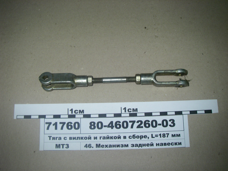 • Тяга з вилкою та гайкою в зборі, L=187 мм (виробництво МТЗ), кат. номер: 80-4607260-03