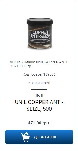 Новий продукт від UNIL мідна паста COPPER ANTI-SEIZE, 500 гр.